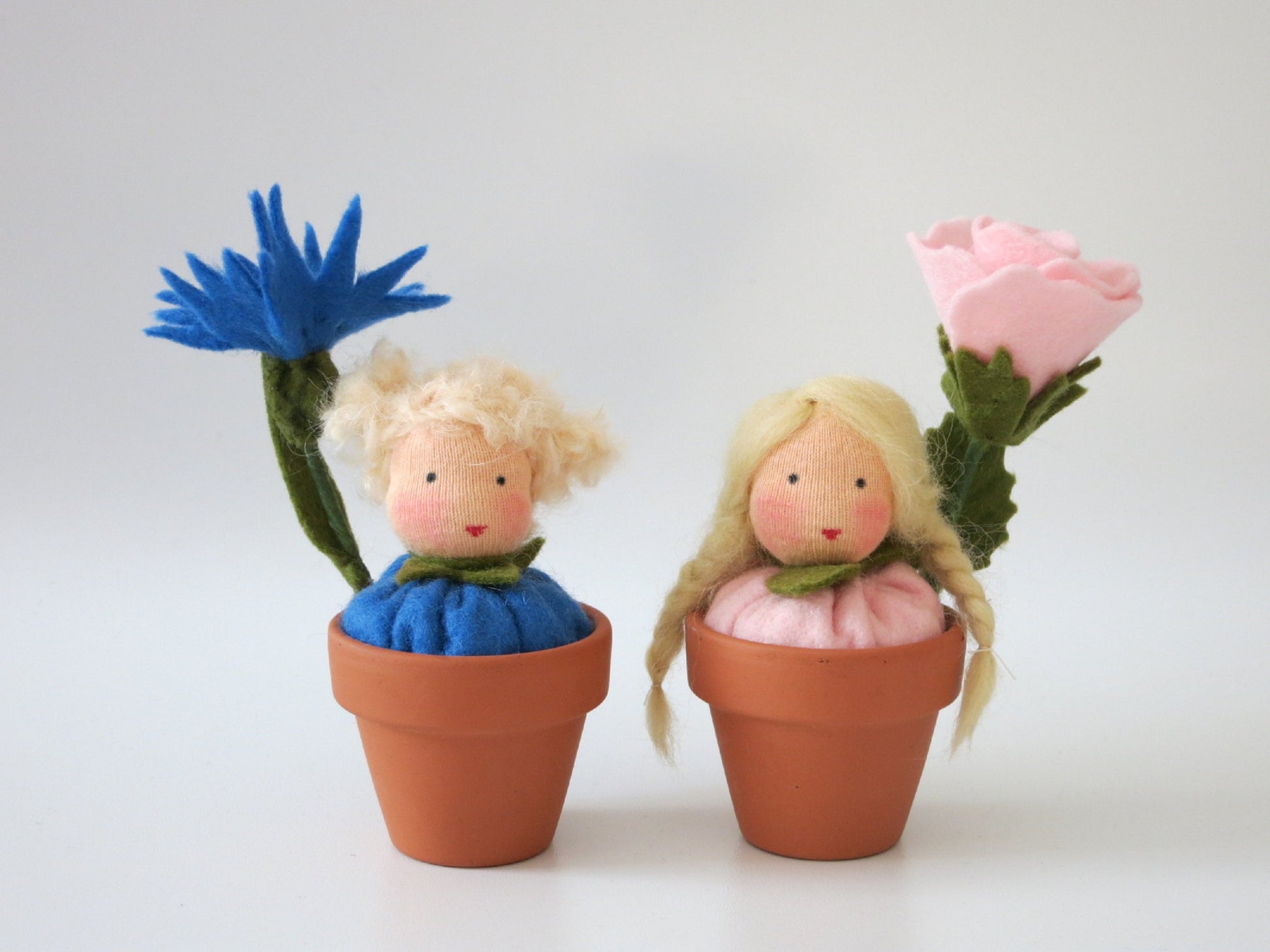 Handgefertigte Blumenkinder und Jahreszeitenfiguren für den Jahreszeitentisch.