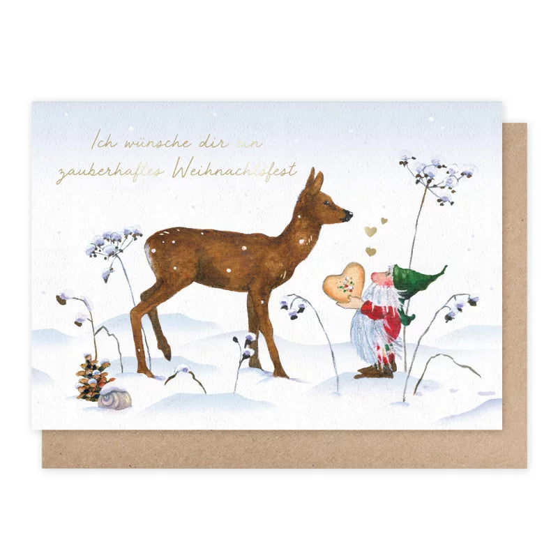 Wichtel mit Reh - Weihnachskarte mit Umschlag Art.Nr.PKWei10