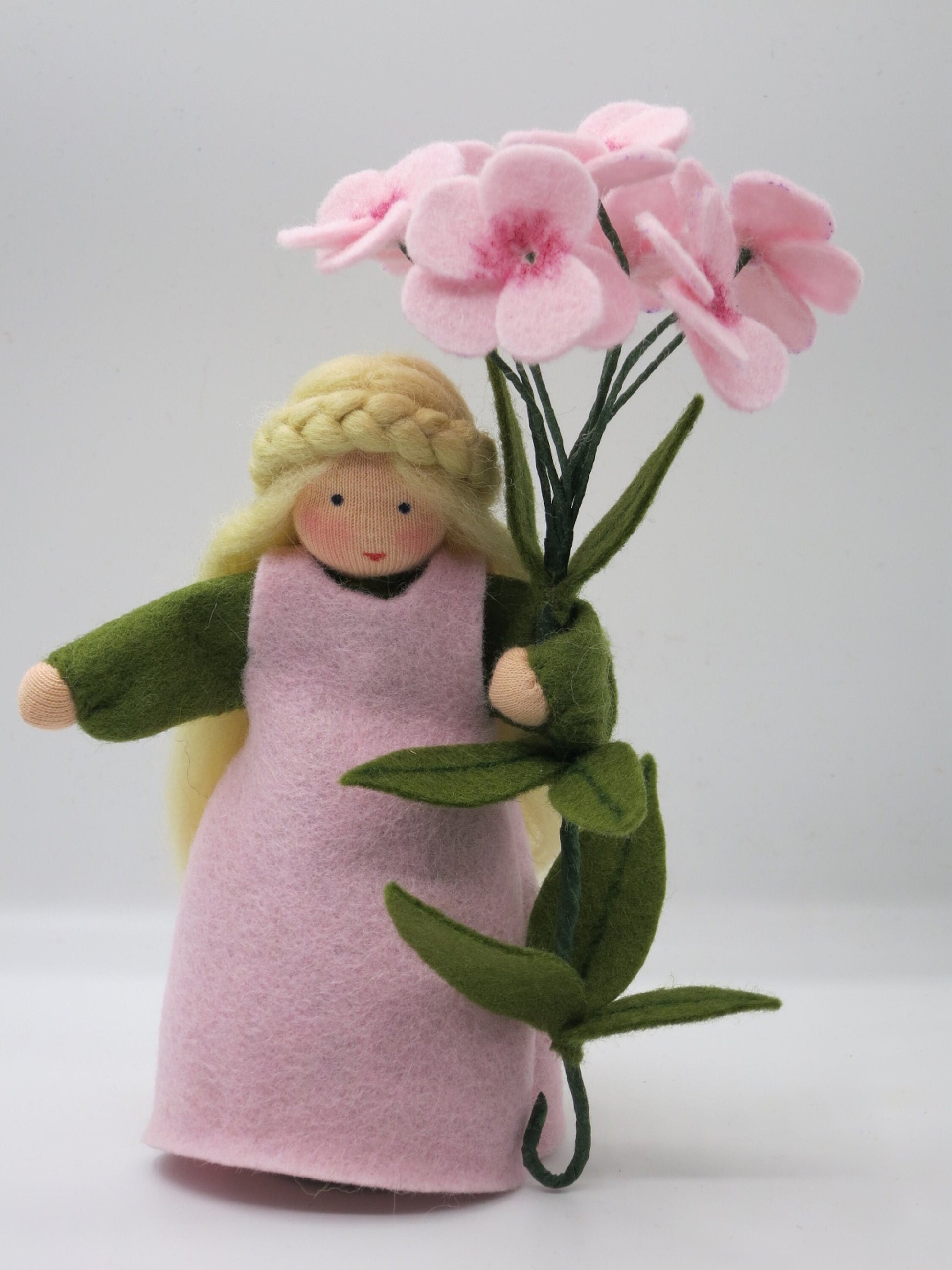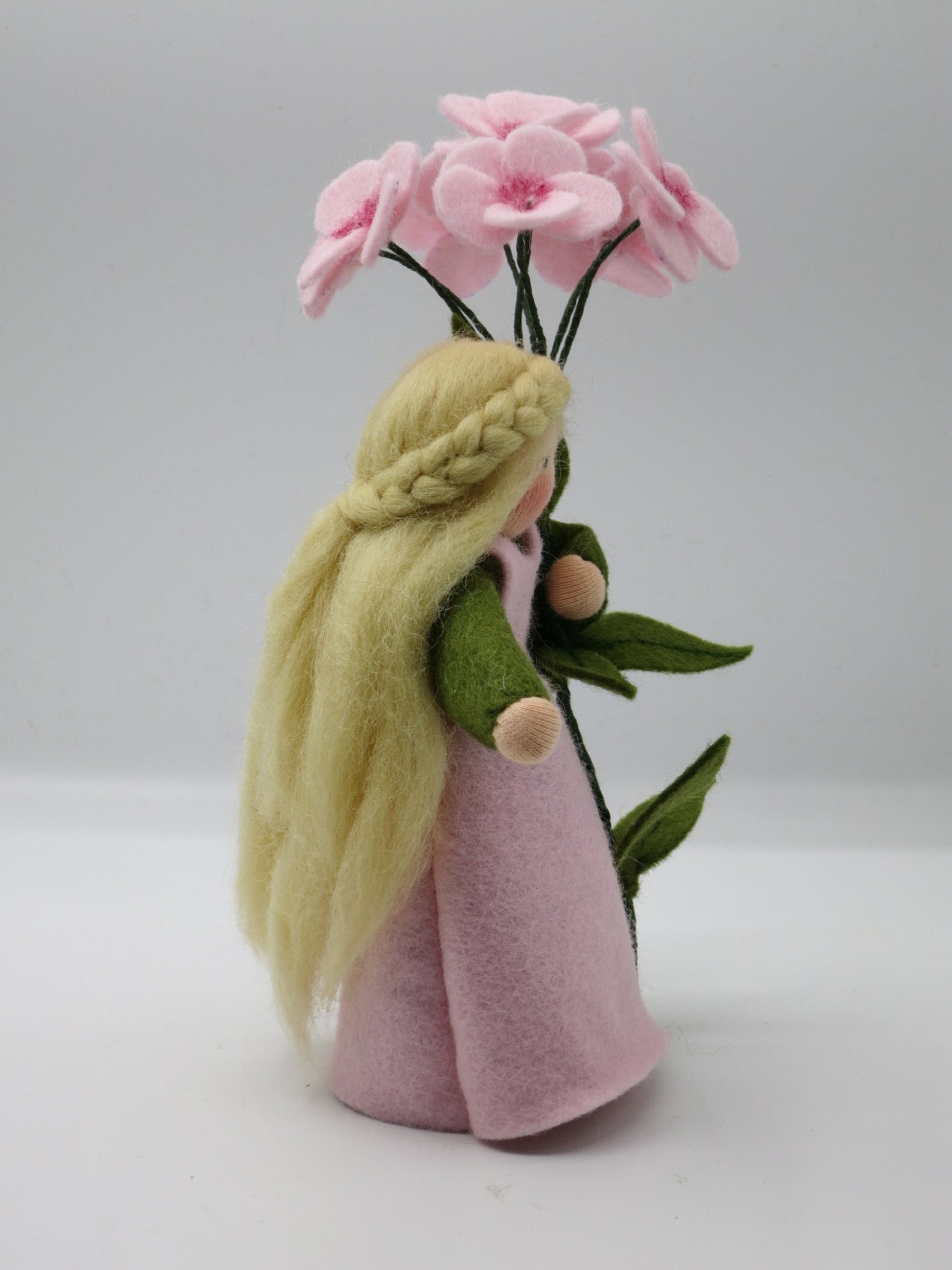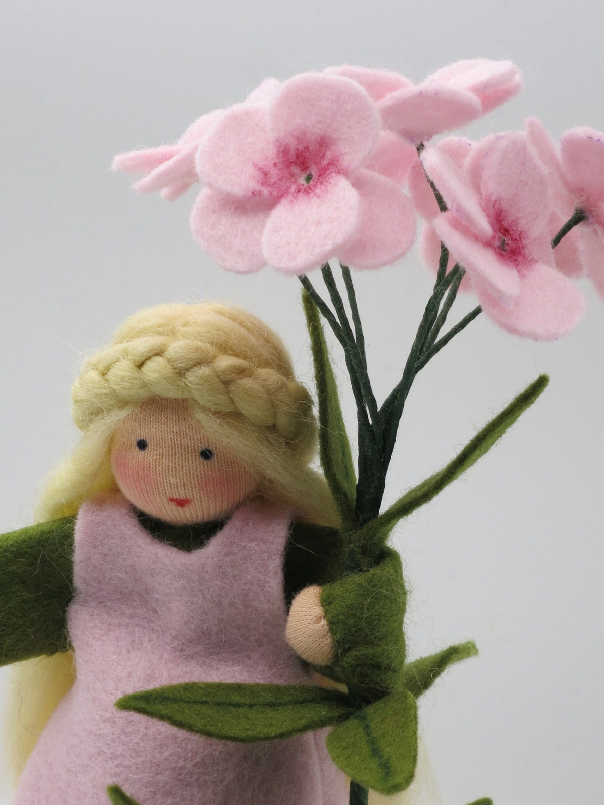Handgemachte Phlox Blumenkind aus Wollfilz im Waldorf-Stil