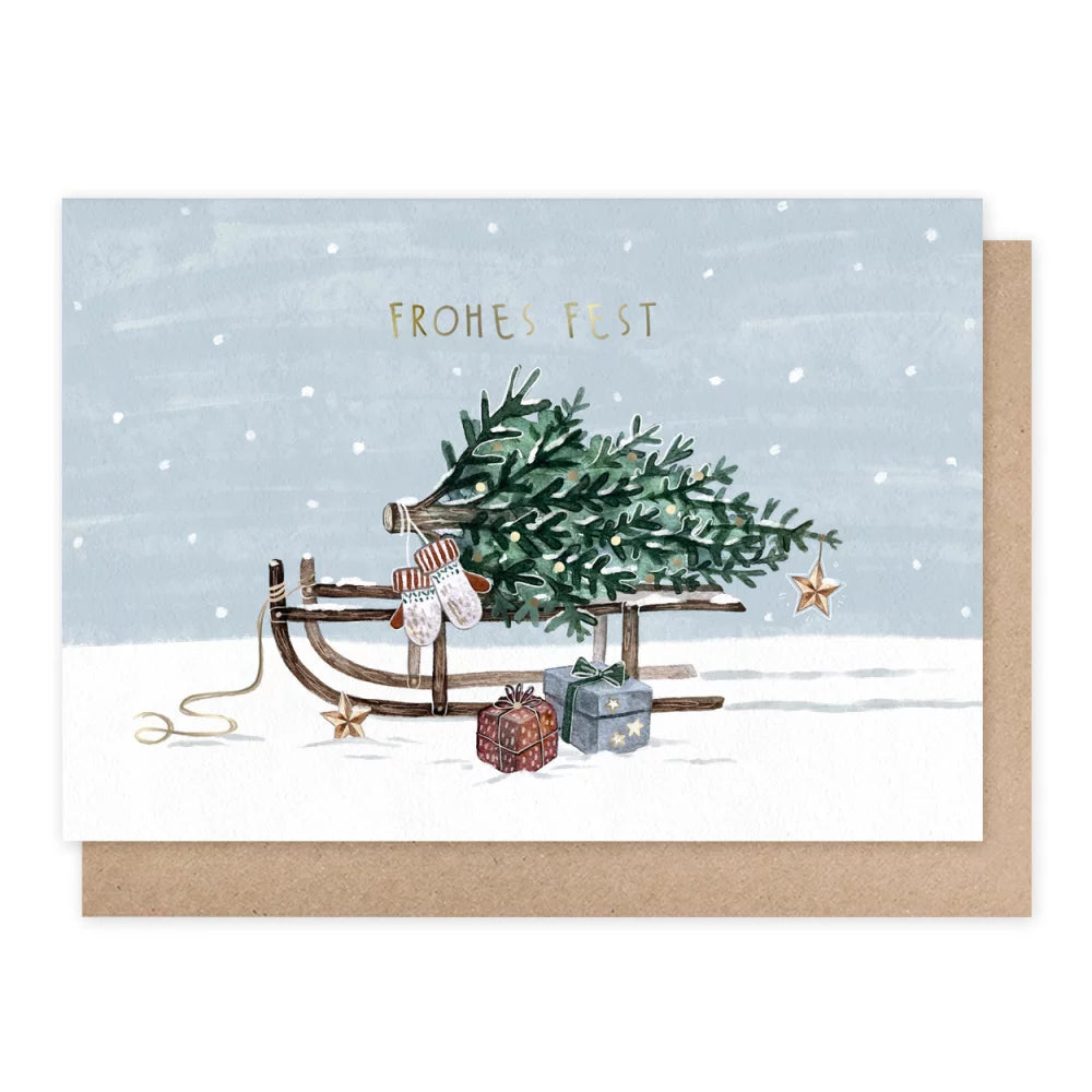 Schlitten mit Tannenbaum - Weihnachskarte mit Umschlag Art.Nr.PKWei48
